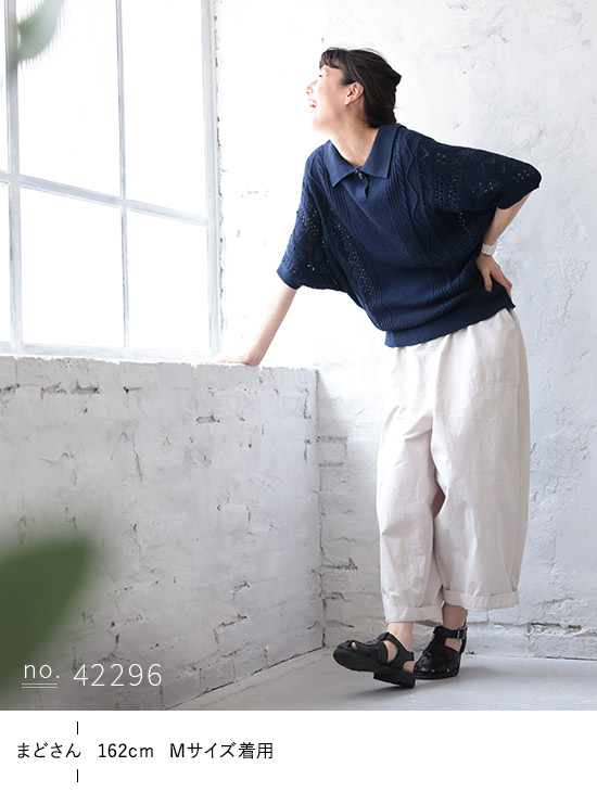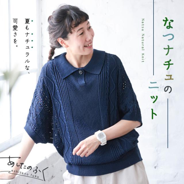 あしたのふく なつナチュのニット レディース プルオーバー サマーニット 五分袖 5分袖 半袖 ドルマン 透かし編み トップス