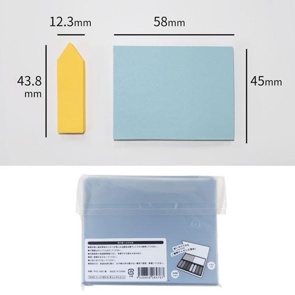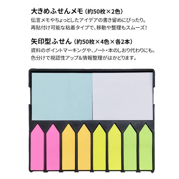 | サイズ | ケース:19×132×108mm ふせんメモ:45×58mm 矢印型ふせん:43.8×12.3mm |