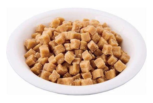 肉類(鶏、鶏レバー)、小麦粉、糖類、とうもろこし、大豆たん白、おから、小麦たん白、オリゴ糖、コラーゲン、地鶏エキス、酵母、乳酸菌(KH-2株(熱処理済み))、かぼちゃ、プロピレングリコール、ミネラル類(リン・カルシウム・ナトリウム・塩素・亜鉛・銅・ヨウ素・コバルト)、ソルビトール、メチオニン、保存料(ソルビン酸K、デヒドロ酢酸Na)、ポリリン酸Na、ビタミン類(A、B2、B12、D、E、コリン、パントテン酸)、リノレン酸
