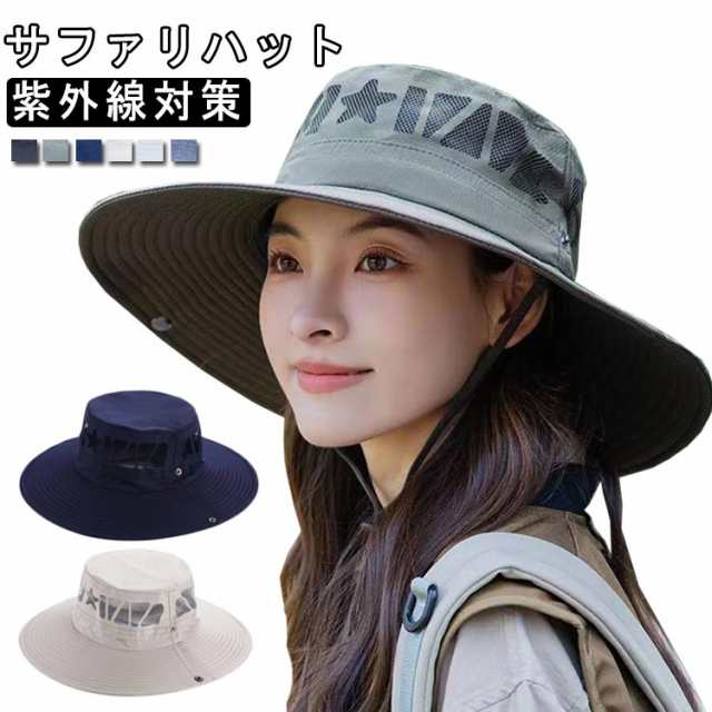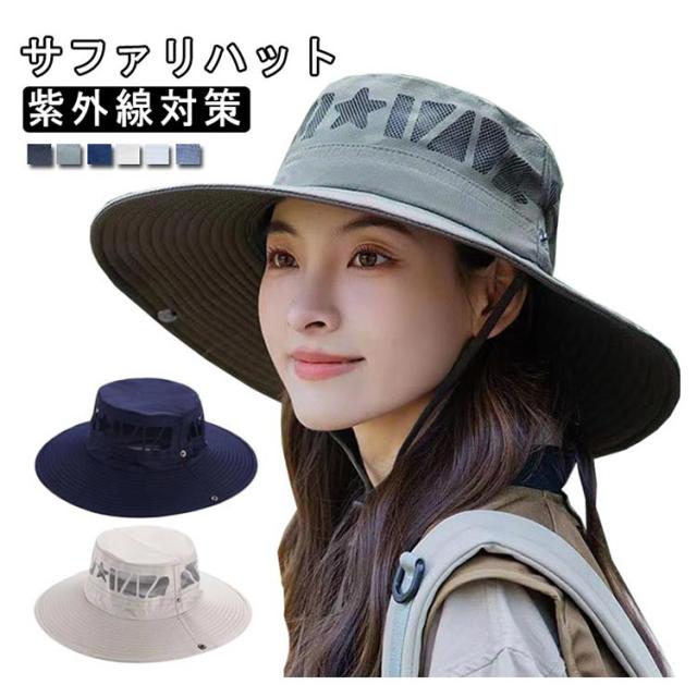 サファリハット サファリハット UVカット ストラップ付き アドベンチャーハット レディース メンズ アウトドア キャンプ キッズ 紫外線カット 運動会 日よけ 撥水 バケットハット UV レインハット 日焼け アウトドア 海水浴 夏 つば広 大人 旅行 男性 女性 ハット