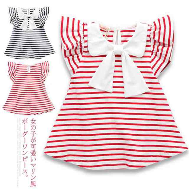送料無料 マリン 1歳 ワンピース ボーダーワンピース キッズ 2歳 可愛い フリル袖 送料無料 リボン 赤ちゃん 6ヶ月 女の子 セーラー ベビードレス 3ヶ月 お祝い 出産 ギフト コットン ベビー