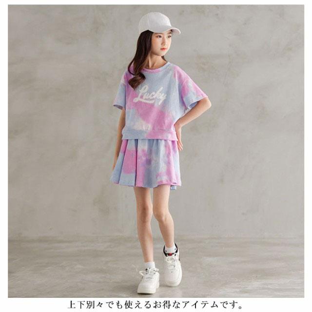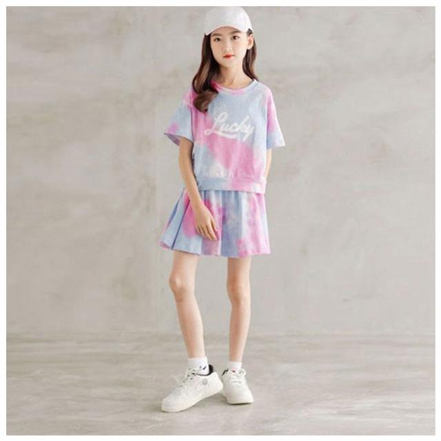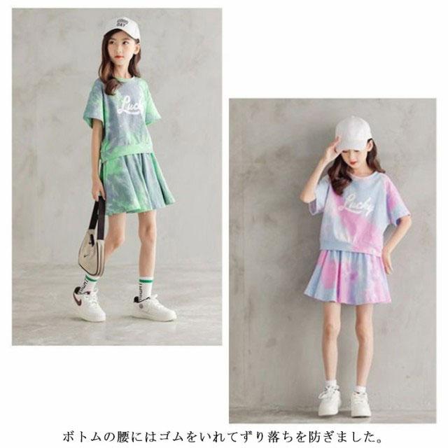 120 ビッグシルエット スカート 半袖 韓国子供服 tシャツ 上下セット グラデーション スウェット キッズ 子供服 セットアップ ジャージ ダンス衣装 女の子 130 Tシャツ パジャマ ベビー 女子 140 150 かわいい 小学生 160 170 夏服
