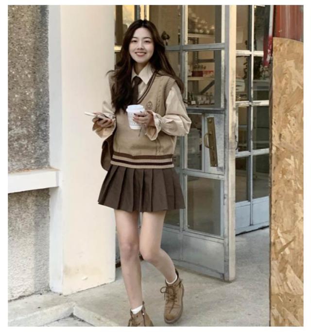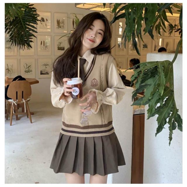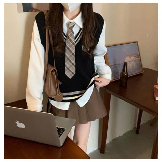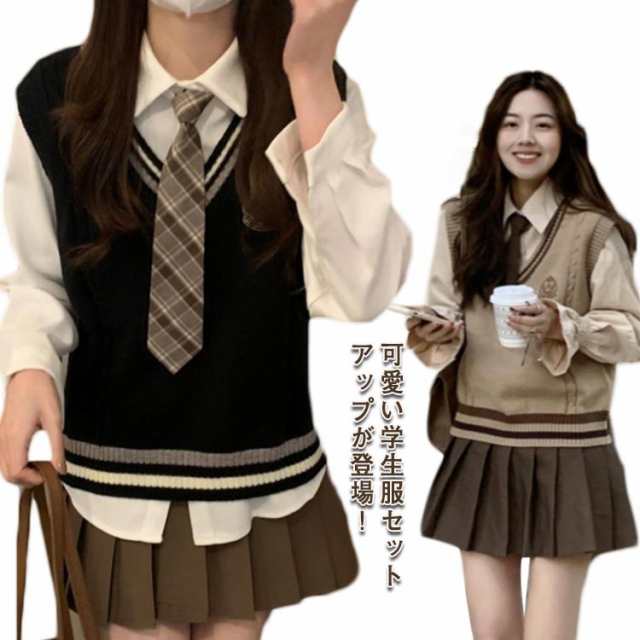 3点セット ニットベスト 学生服 おしゃれ 高校生 女の子 制服 上下セット 可愛い 白シャツ JK制服 女子高校生 プリーツスカート ライン入り スクール制服 女子高校生 長袖 中学生 学生服 韓国 コスプレ衣装 コスチューム 仮装 スーツ