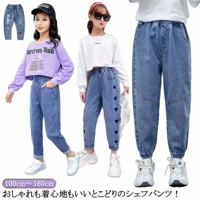 ボトムス ジョガーパンツ 女の子 ガールズ ボーイズ 130cm 男の子 デニム ロングパンツ キッズ 100cm ブラック 120cm 150cm 140cm 110cm 160cm ストレッチ 長ズボン デニム ワイドパンツ ズボン 子供服 無地 テーパード デニムパンツ