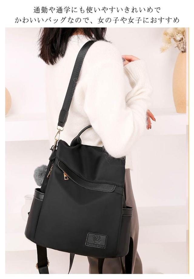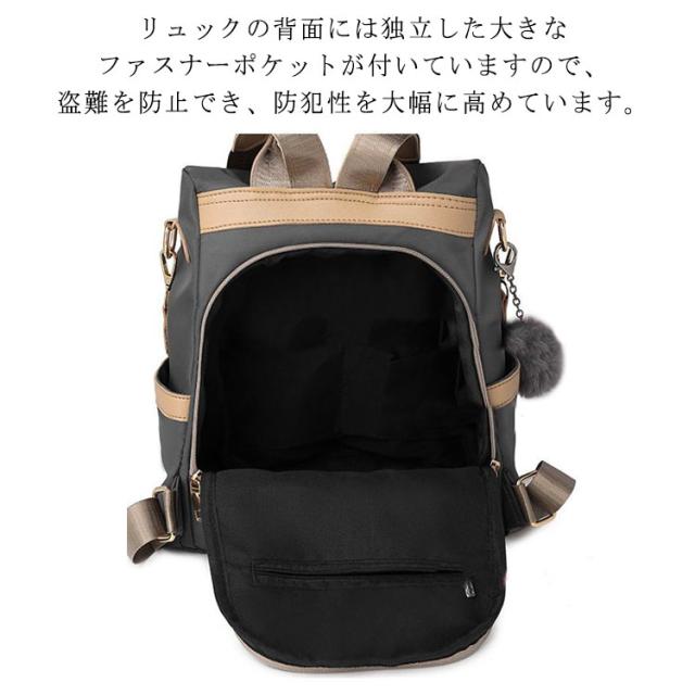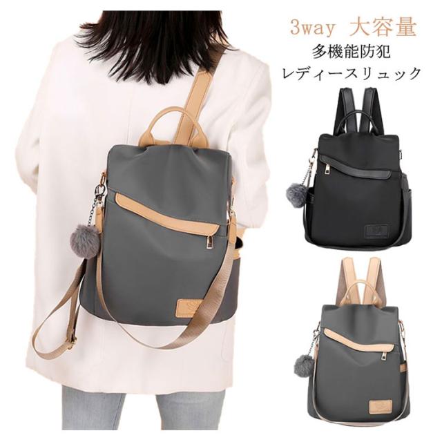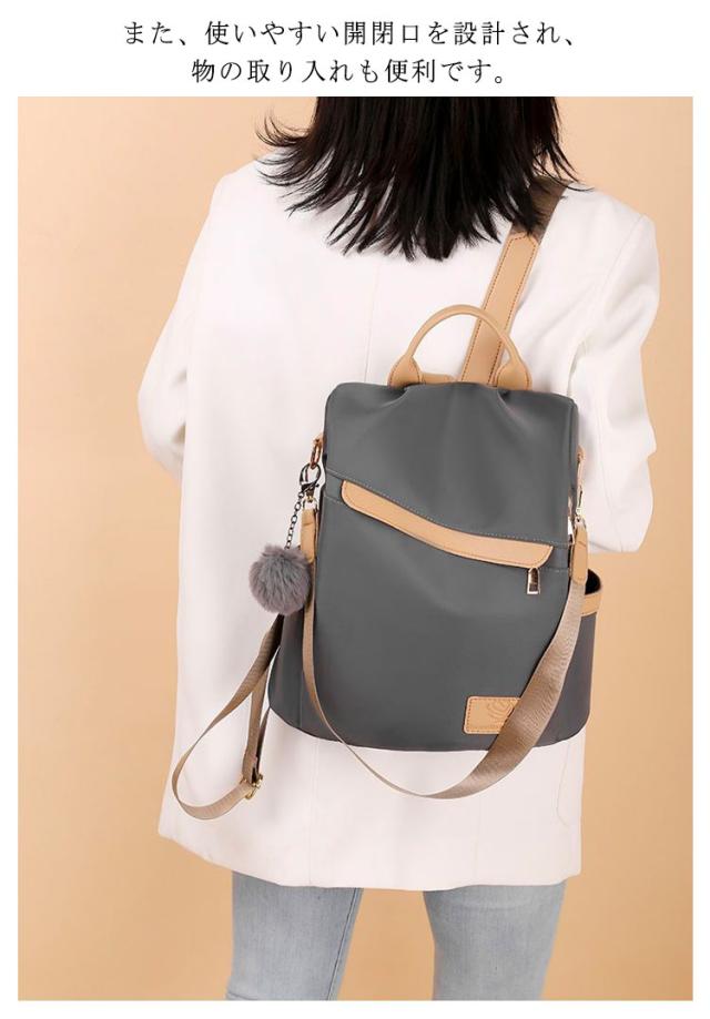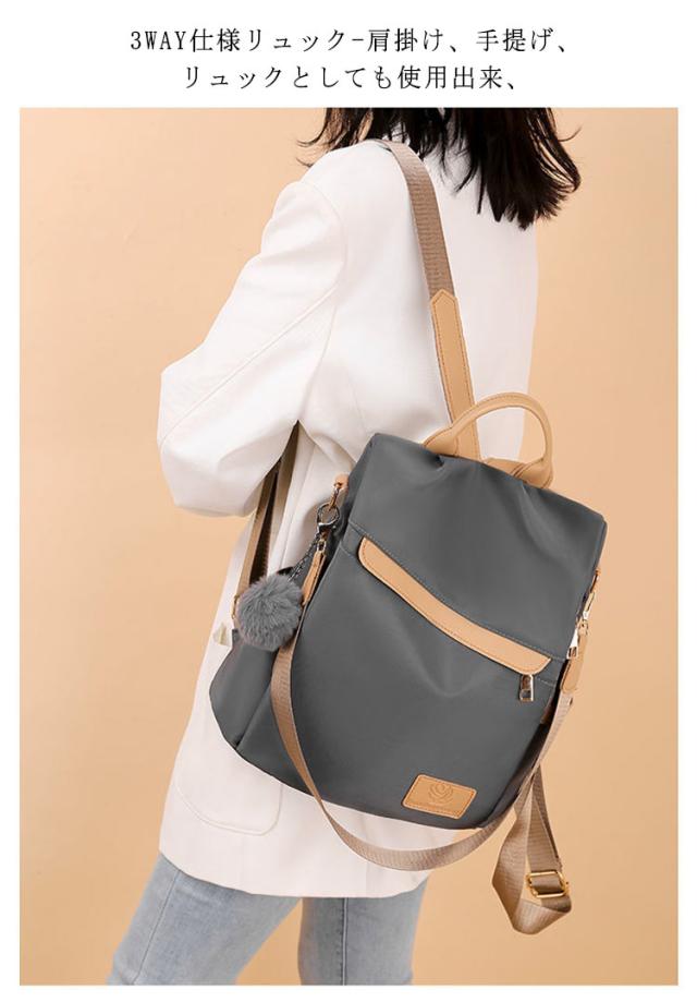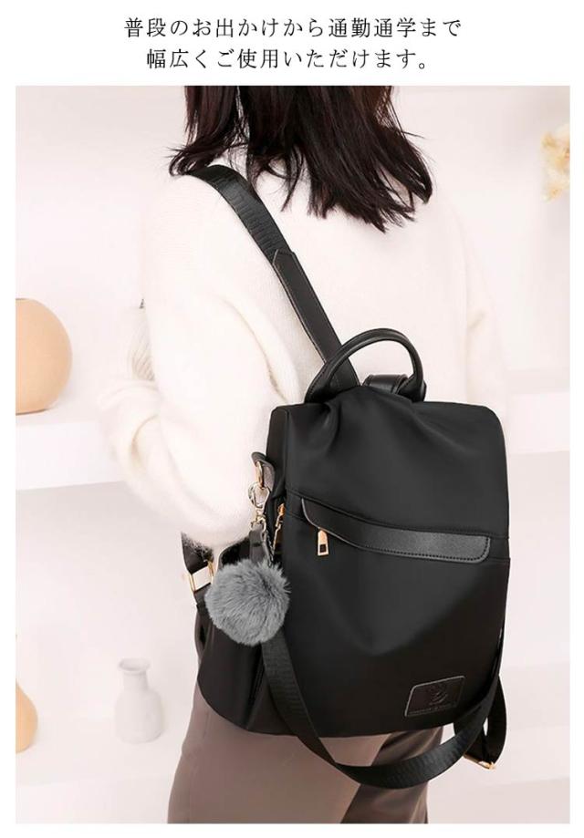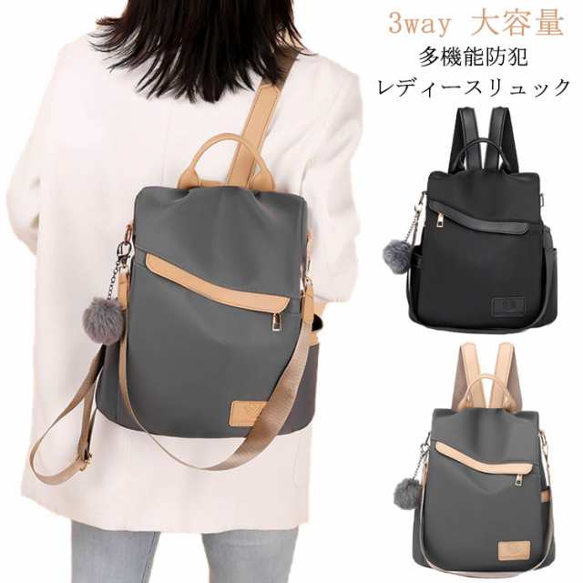 おしゃれ 軽量 防犯リュック リュック 3way リュック レディースリュック ナイロン 撥水 耐摩耗 大容量 防水 バッグ リュック ハンド ショルダー バッグ ファーチャーム付き