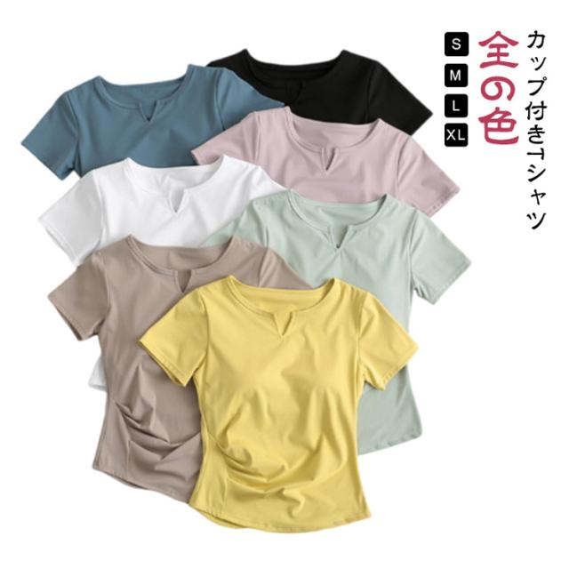 半袖 ブラトップ トップス Tシャツブラ ルームウェア カットソー パッド付き Tシャツ インナー 肌着 春夏 無地 締め付けない カップ付き 半袖インナー カップ付きTシャツ レディース カジュアル スポーツ