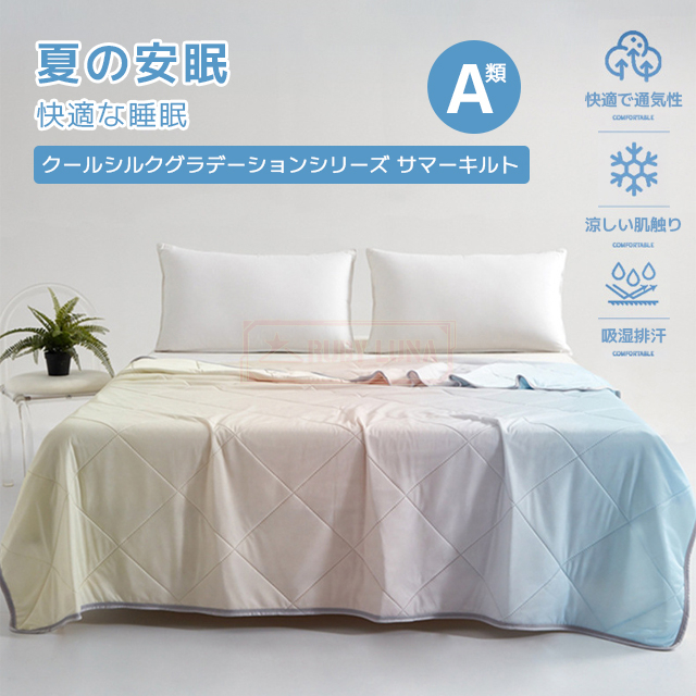 最安挑戦 冬新作 送料無料 新作 ブランケット グラデーション クールシルク サマーキルト ひんやり 接触涼感 夏用薄手キルト 布団 夏布団 肌に優しい 通気性 快適 夏の安眠 睡眠 涼感 無地 エアコンキルト 洗濯機で洗える