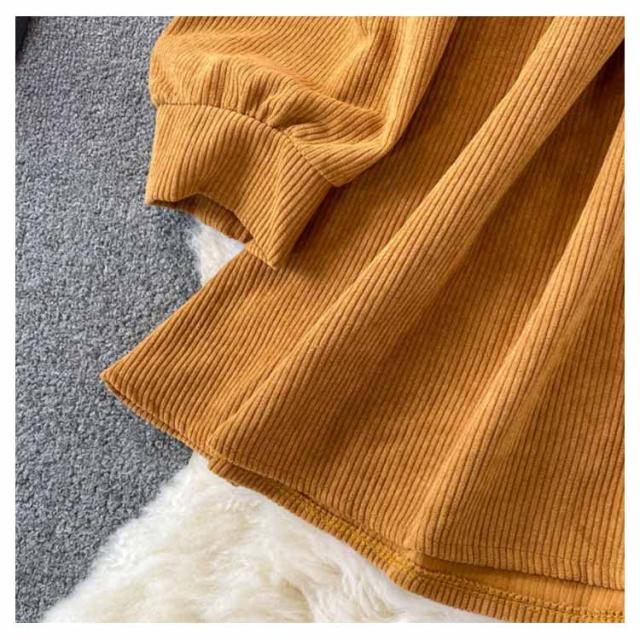 小柄にぜひ必見!コーデュロイ ワンピース 送料無料 レディース 秋冬 チュニックワンピース クルーネック 長袖ワンピース カジュアル ベルト付き バックファスナー シンプル 森ガール