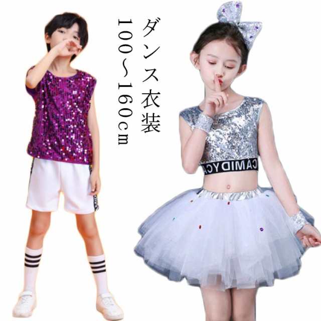 キッズ ダンス衣装 スパンコール 子供 ダンス 服 チュール ジュニア ガールズ 衣装 こども 派手 目立つ スカート ヒップホップ チアダンス 発表会 キラキラ HIPHOP 韓国 送料無料