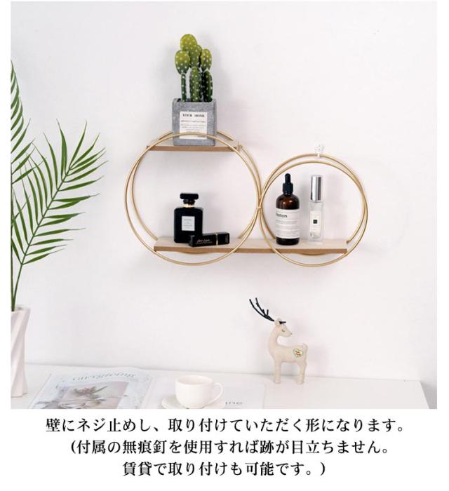 ウォールシェルフ ウォールラック 円形 丸 アイアン 木製 壁掛け 棚 深型 飾り棚 壁飾り ウォールディスプレイ ウォールデコ 壁面収納 ラック 賃貸 洗面所 リビング インテリア モダン ゴールド ブラック 無痕釘