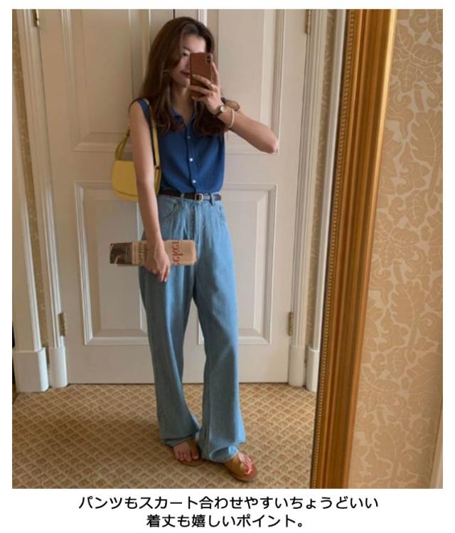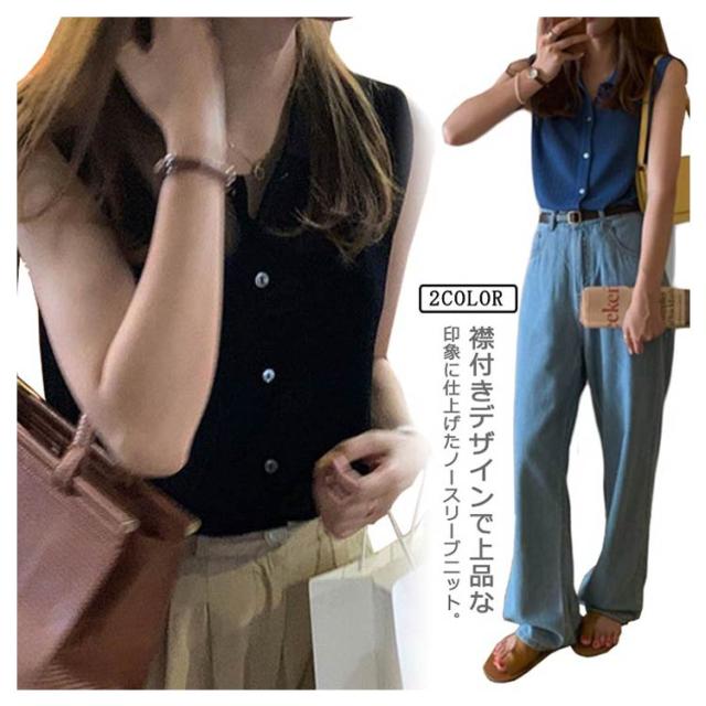 送料無料 薄手 サマーニット ノースリーブ カットソー 襟付き ノースリニット タンクトップ トップス リブニット ボタン 前開き カーディガン レイヤード 無地 ショート丈 きれいめ フェミニン セクシー 体型カバー 夏物