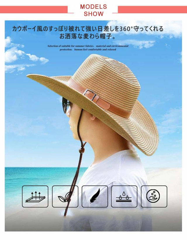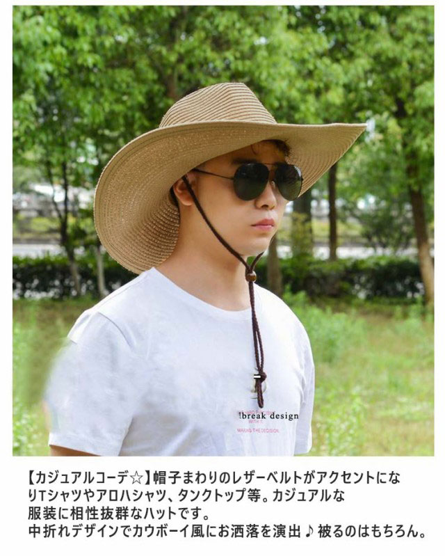 | 【人気のテンガロンハット】カウボーイ風のすっぽり被れて強い日差しを360°守ってくれるお洒落な麦わら帽子。 【日焼け対策に】メンズでも紫外線は気になる敵!長いツバで日焼け予防になり、日焼け対策にオススメ!強い風が吹いても、ドローコード(あご紐)付きで吹き飛ぶ心配もございません。 【折り畳める万能ハット】クルクル丸めて小さく収納できるポケッタブルタイプの帽子だから、持ち運びにとっても便利♪旅先などにおける、とても重宝な優れものです。 【カジュアルコーデ☆】帽子まわりのレザーベルトがアクセントになりTシャツやアロハシャツ、タンクトップ等。カジュアルな服装に相性抜群なハットです。中折れデザインでカウボーイ風にお洒落を演出♪被るのはもちろん。 【使用に大活躍】屋外での作業や自転車の運転時にも便利。キャンプ・登山・旅行・海水浴・ガーデニング・スポーツ観戦など屋外での使用に大活躍♪ | |