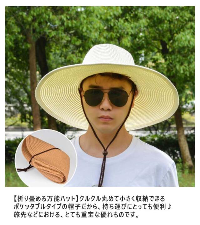 つば広 大きい 麦わら帽子 メンズ 農作業 帽子 折りたたみ可能 帽子 父の日 夏 UV 日除け つば長さ12CM レディース 子供 おしゃれ UVカット 紫外線 大きいサイズ 送料無料