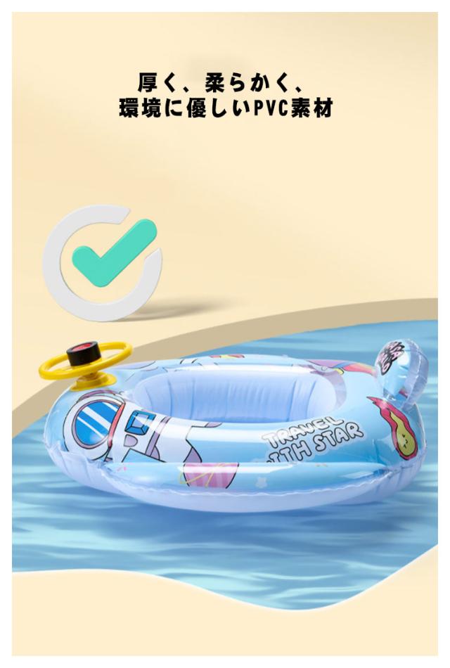 | お子様も楽しくなる可愛いデザイン、水泳の楽しさを高めましょう。 ハンドルもあります、子供が運転する気分を感じます。 厚く、柔らかく、環境に優しいPVC素材で作られています。 子供が転倒することを防ぎ、安全に使用できます。 安定感バッチリでゆらゆらと遊んでも簡単には倒せません。 穴から足を出して、安定させることができるのでお子様も安心して海やプールを楽しむことができます。 折りたたんでコンパクトに収納でき、軽量で子供と女性も持ち転びに便利です。 | |