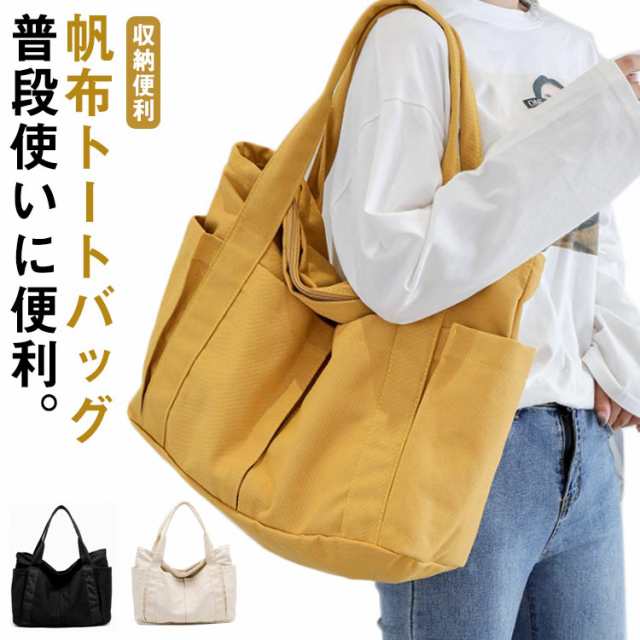 ショルダーバッグ エコバッグ トートバッグ キャンバスバッグ A4 収納 バッグ ショルダーバッグ エコバッグ お出掛け 多ポケット 収納便利 使いやすい ベージュ ブラック イエロー