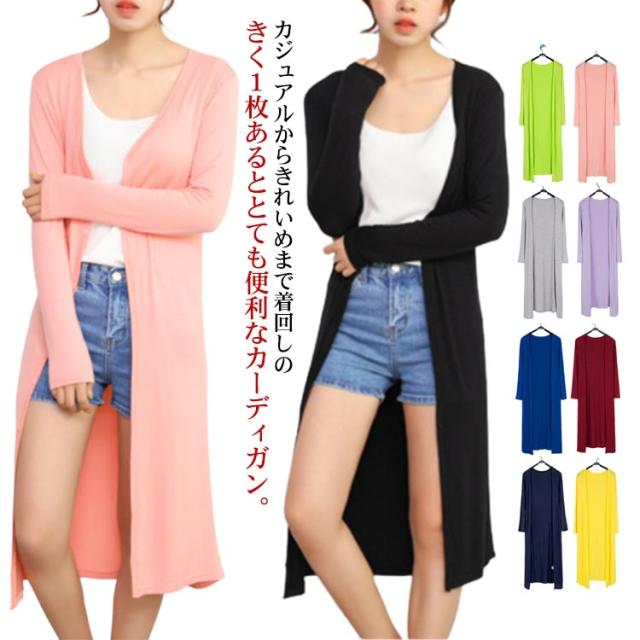 送料無料 ロングカーディガン レディース 薄手 カーディガン きれいめ ゆったり 無地 春夏 通気性 uv 長袖 シンプル ロング丈 涼しい 冷房対策 紫外線対策 羽織り ミモレ丈 アウター モダール カラバリ豊富