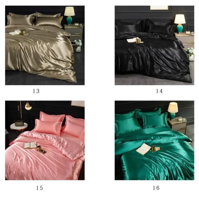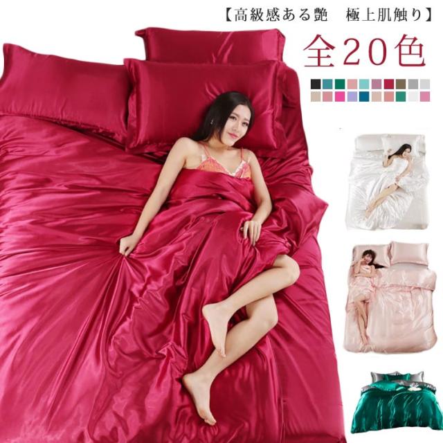 全20色 布団カバー 4点セット 接触冷感 シルク調 布団カバーセット 掛け布団カバー ボックスシーツ シーツ 枕カバー セット シンプル 無地 涼感 ひんやり 涼しい 寝具カバー サテン シルクタッチ 丸洗い