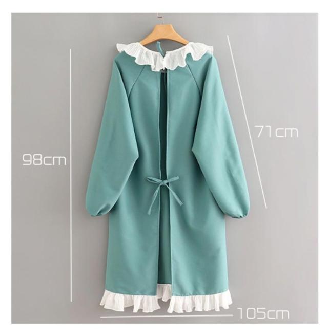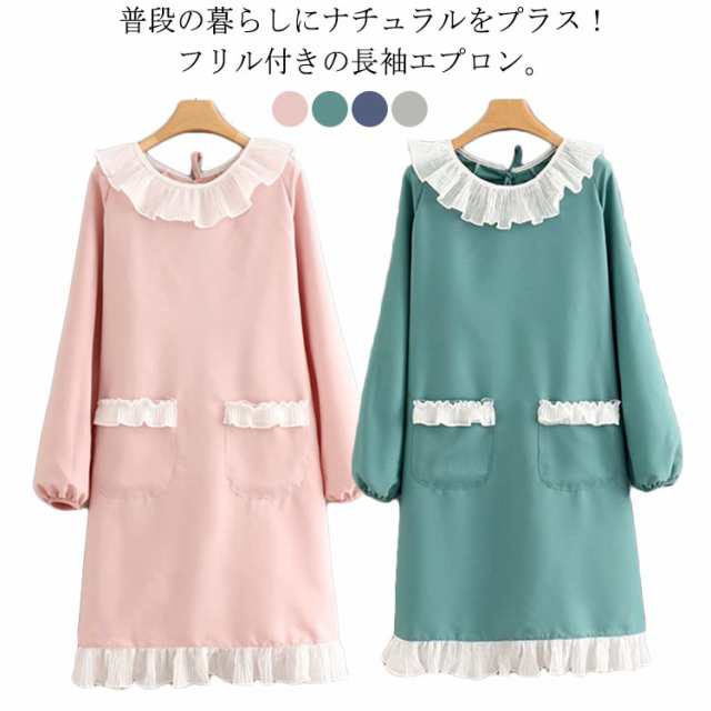 送料無料 割烹着 かわいい 保育士 ロング チュニック かっぽう着 おしゃれ シンプル レディース エプロン スモック 無地 フリル 介護士 母の日 プレゼント 給食 学校