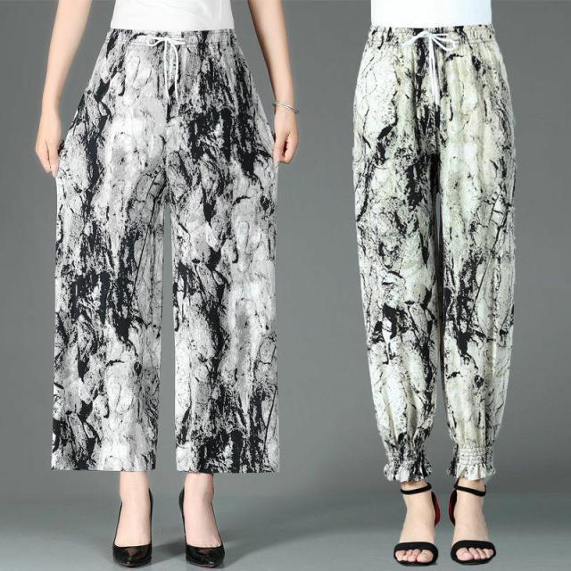 商品名:ワイドパンツ レディース 夏 接触冷感 冷感パンツ 9分丈 柄パンツ 総柄 涼しい 春 夏 秋 おしゃれ 体型カバー 40代 50代 60代