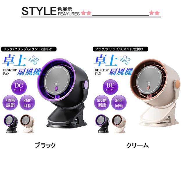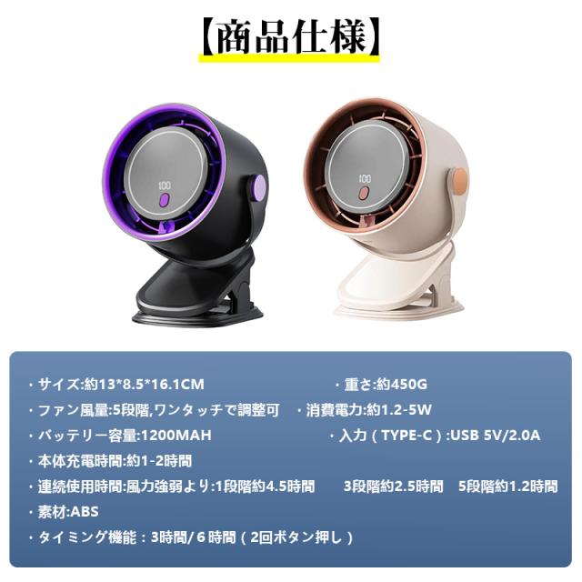 卓上&クリップ式扇風機:クリップ式で様々なところに挟んで使用可能、大変便利です!アイデア次第、卓上・吊下げ・クリップなどの方式で設置ができます。