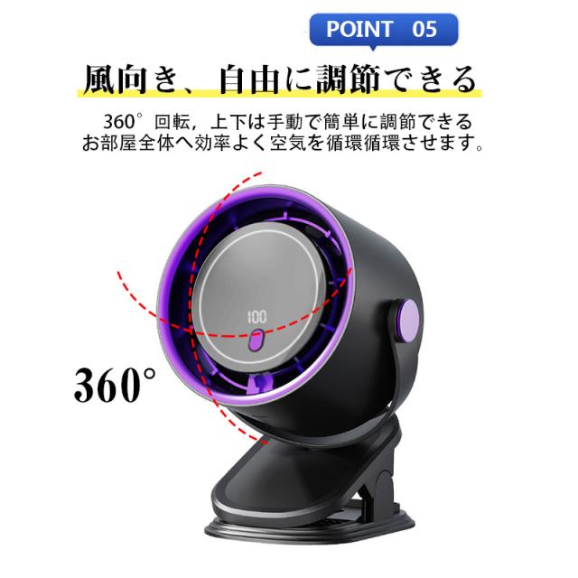 360°回転&5段階風量調整:送風モードが5段階調整可能です。360度上下左右に回転可能で好みに合わせて角度調整して様々な角度から気持ち良い涼しい風が吹きます。