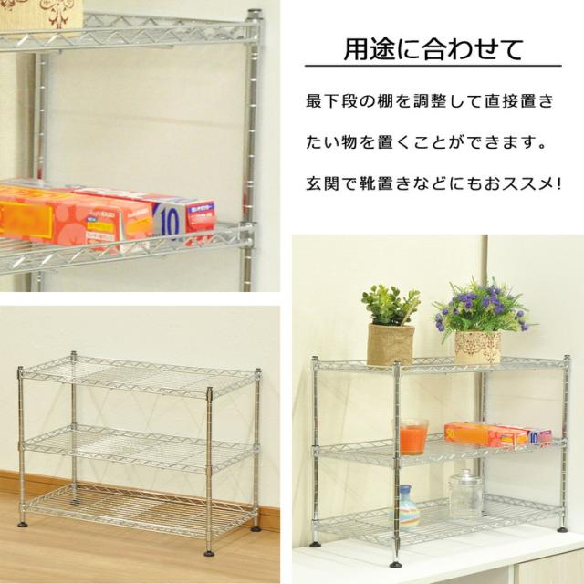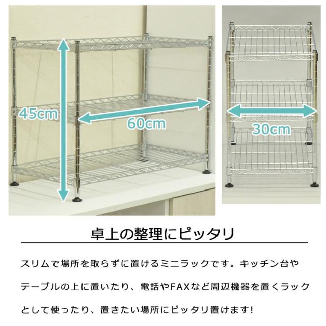ミニラック 3段 3個セット メッキ 60×30×45 ラック スチールラック 幅60 キッチン リビング パントリー 玄関 飾り棚 インテリア 収納 多目的棚 卓上 フリーラック 組立品 オープンラック(代引不可)【送料無料】