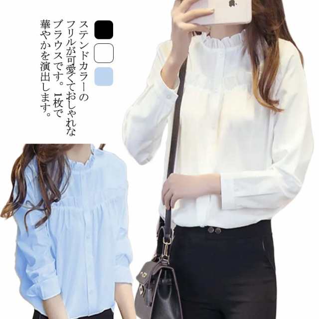 シャツ ブラウス レディース フリル 白シャツ フワフワ レース トップス ハイネック 高襟