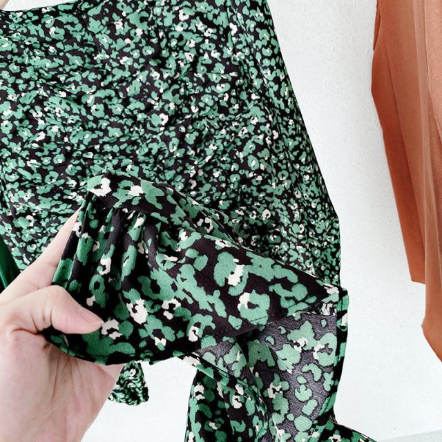 ワンピース ミニ丈 フレア 長袖 レディース 女性 ショート丈 スクエアネック バルーンスリーブ フリル ヒョウ柄 おしゃれ 可愛い セクシー