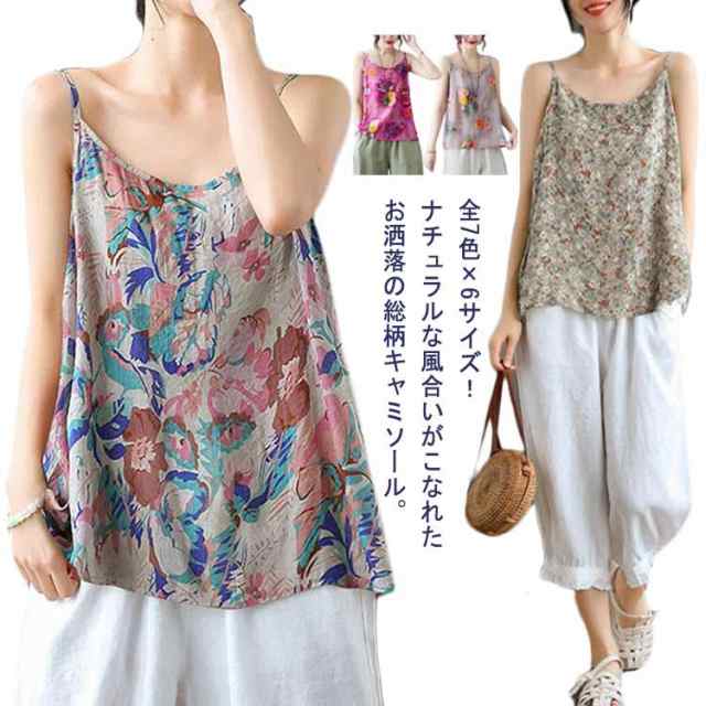 キャミソール トップス 夏 総柄 花柄キャミソール 送料無料 ロング丈 レディース ロングキャミソール フレアトップス レイヤード 重ね着 ゆったり トレロ 可愛い 30代 40代 50代
