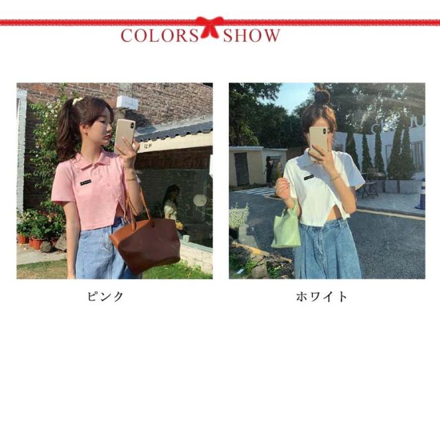 【送料無料】ポロシャツ レディース シャツ 半袖トップス カットソー Tシャツ 半袖シャツ かわいい おしゃれ 無地 ゆったり 綿 プルオーバー 涼しい スポーツ ピンク ホワイト