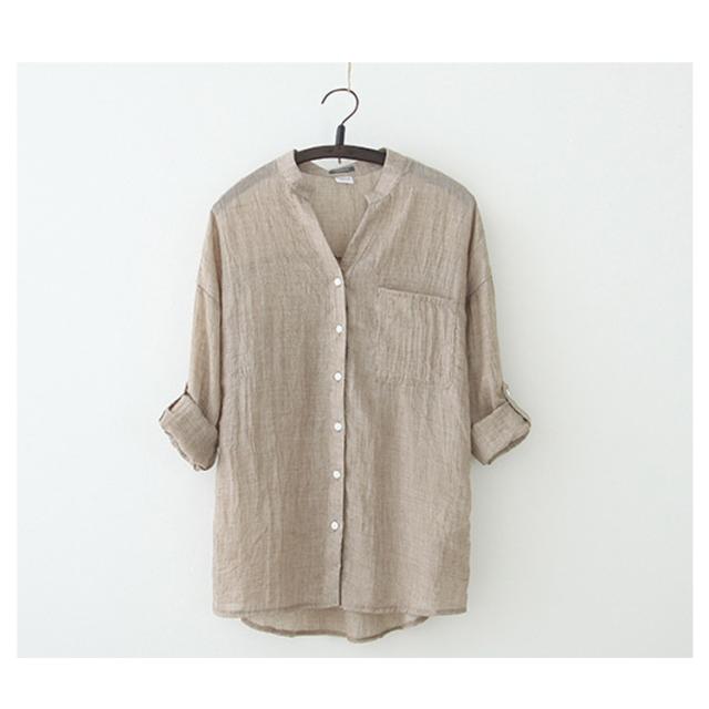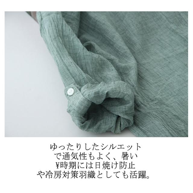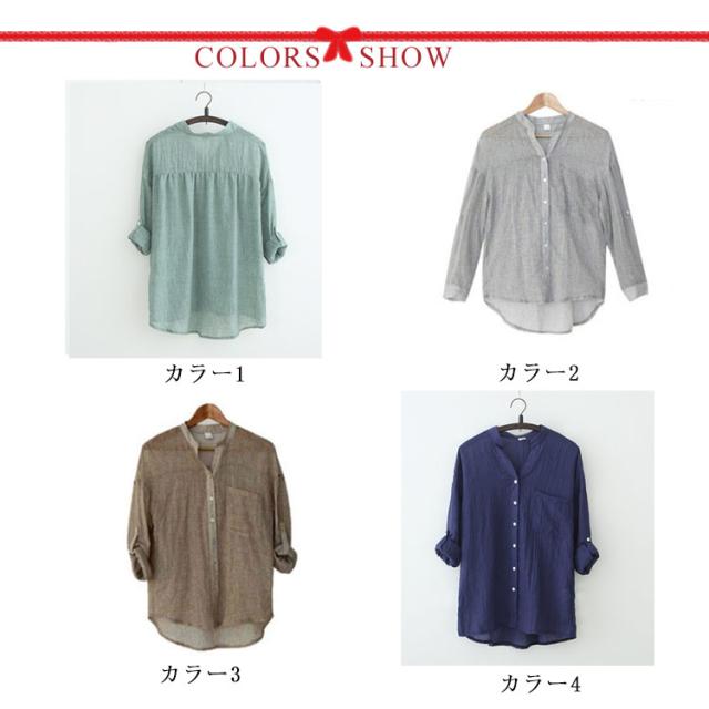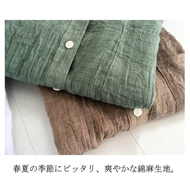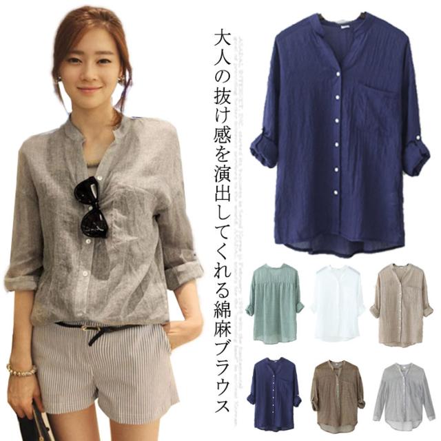 リネンシャツ リネン シャツ レディース 綿 麻 シャツ ブラウス Vネック 綿麻シャツ スキッパーシャツ UVカット カジュアルシャツ スタンドカラー 長袖 七分袖 透け感 日焼け防止 トップス 無地 薄手 涼しい ゆったり