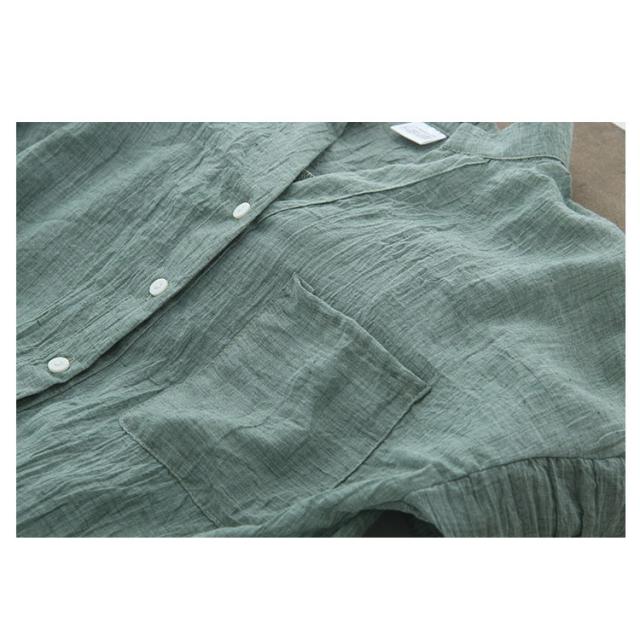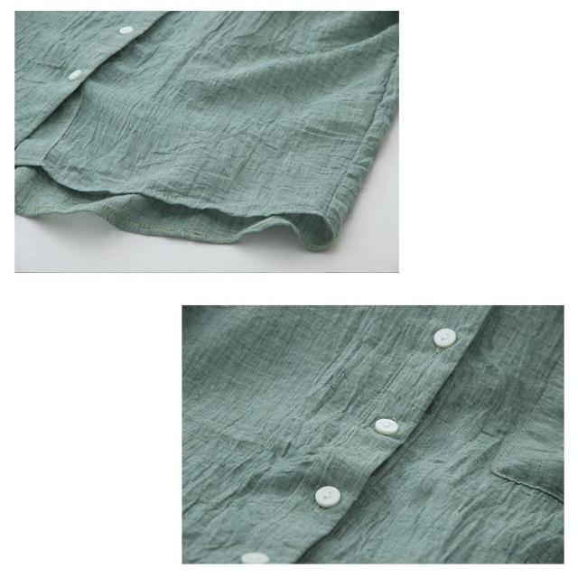 | ラフに着られる大人気のリネンシャツ。 春夏の季節にピッタリ、爽やかな綿麻生地。 ナチュラルな風合いで洗った後のシワ感も楽しめます。 シンプルな様式で大人らしい印象を与えます。 | |