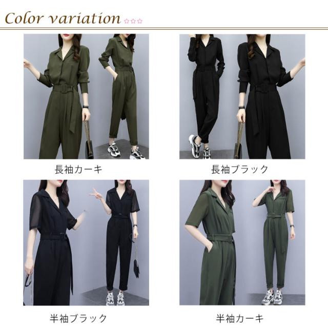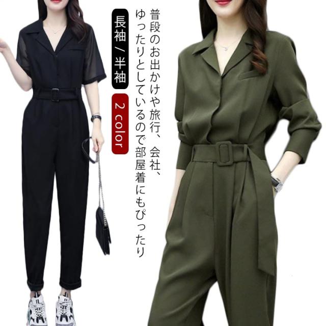 オーバーオール レディース 黒 ジャンプスーツ 半袖 長袖 オールインワン 無地 サロペット 作業服 半袖つなぎ レディース 半袖ツナギ 長袖ツナギ レディース 長袖つなぎ 大きいサイズ ゆったり カーコパンツ ワークウェア ストリート アウトドア サルエルパンツ カジュアル