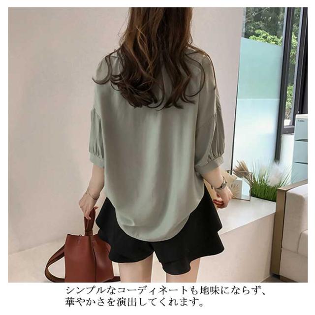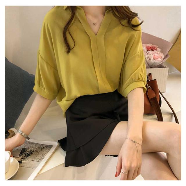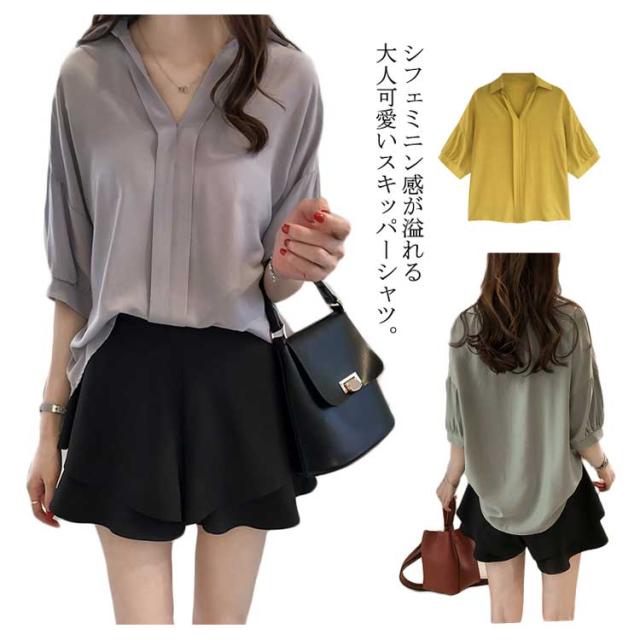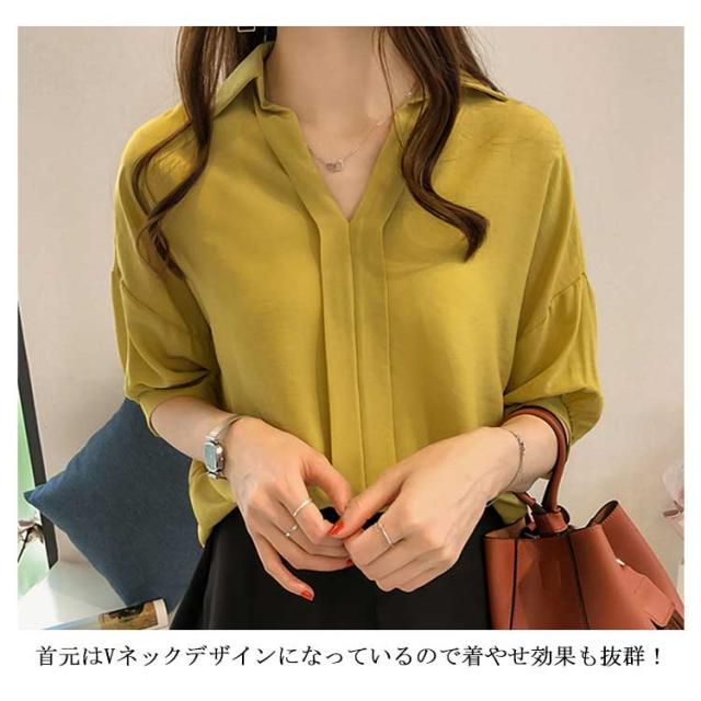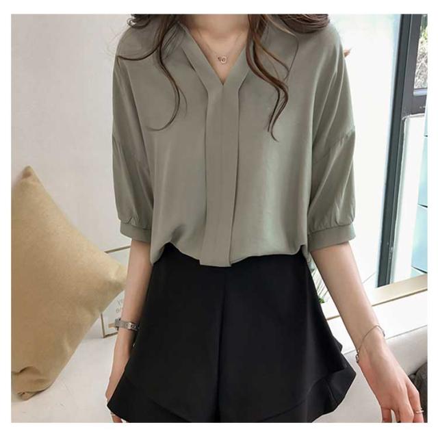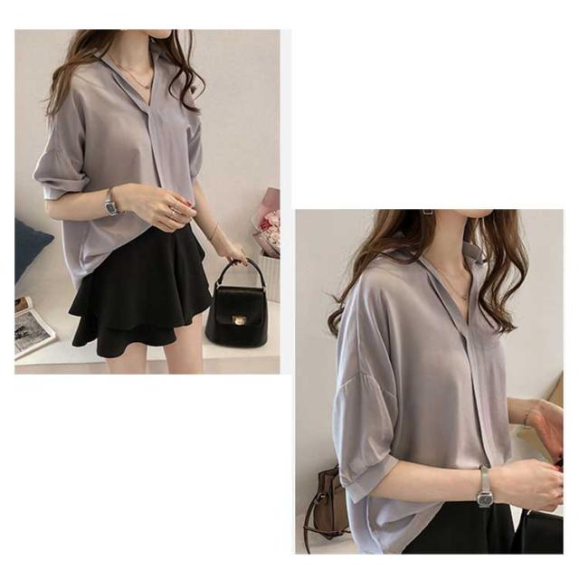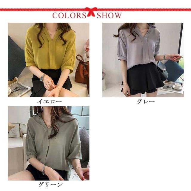 ブラウス レディース 女性用 シフォンブラウス 五分袖ブラウス シャツブラウス Vネック ライトアウター トップス 春夏 ビジネス 薄手 セクシー OL 無地 きれいめ 通勤 エレガント 大人 かわいい スリム おしゃれ 大人 送料無料