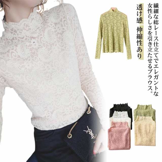 レース トップス 長袖 レース ブラウス 総レース 春 秋 シアートップス ハイネック 透け感 シースルー トップス 花柄 レディース インナー 薄手 韓国ファッション 伸縮性あり 柔らかい レイヤード 重ね着 きれい おしゃれ かわいい 春夏 秋冬 送料無料