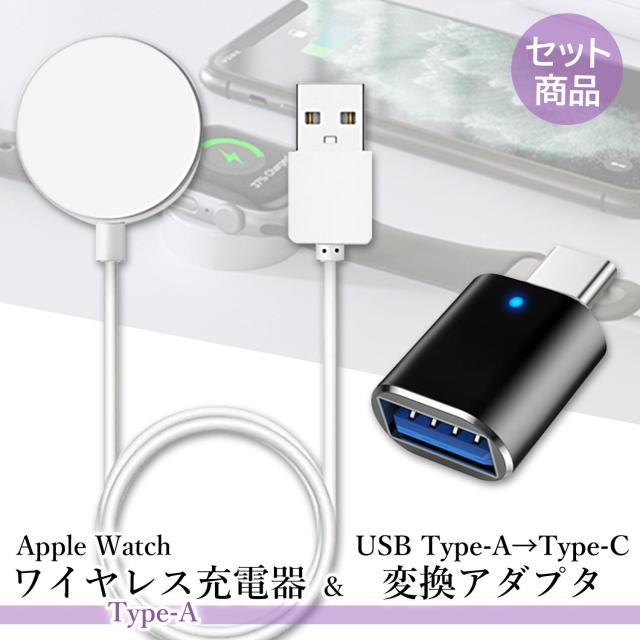 アップルウォッチ 充電器 ワイヤレス充電器 タイプc変換アダプタ付き USB Type-A 全シリーズ対応 急速 高速 持ち運び磁気 (管理S) 送料無料