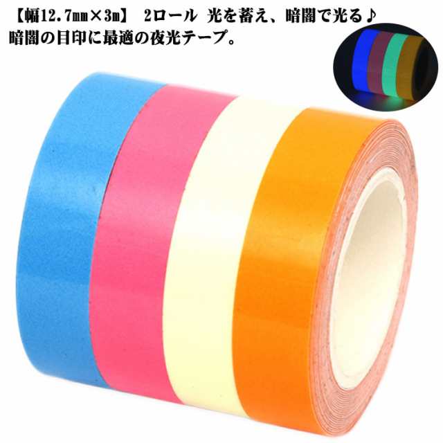 夜光テープ 蓄光テープ 【幅12.7mm×3m】 2ロール 発光テープ シール 階段 目印 夜間に光る 蛍光テープ 光るテープ 送料無料 非常口 階段 段差 防災用品 防犯 DIY 工具 防水 防滴 スイッチ 壁 標識 懐中電灯 自転車 事故防止 夜釣り ドアノブ