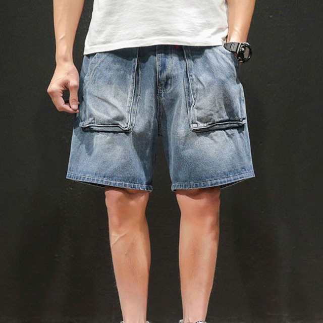 デニム ショートパンツ メンズ 細身 ポケット ハーフパンツ 大きいサイズ ショーツ デニムパンツ ジーンズ ジーパン 春夏 短パン メンズパンツ ブルー