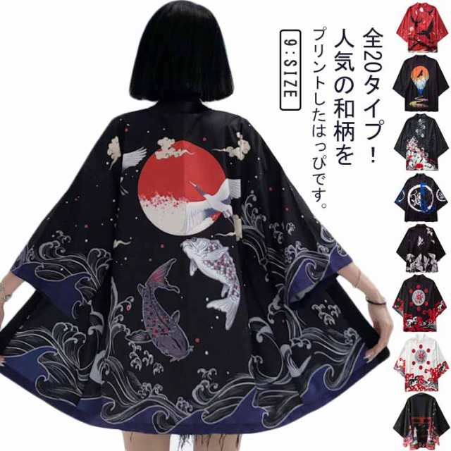 サマーカーディガン 七分袖 ユニセックス 和柄 甚平 ハッピ ダンス 法被 大人 レディース メンズ 鶴柄 お祭り アウター はっぷ 桜柄 半纏 はんてん イベント 羽織り コスプレ コスチューム 和装 法被 おしゃれ トップス 部屋着 春夏