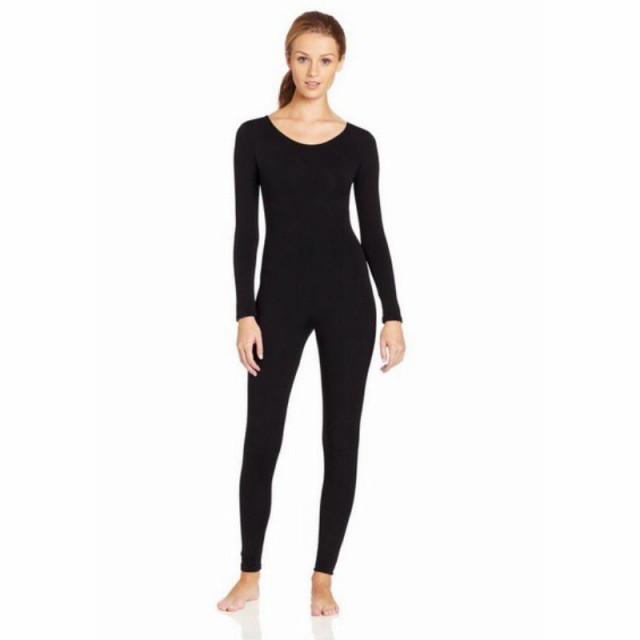 レディース 長袖 ダンス ジム ヨガ ユニタード ボディスーツ 全身タイツ ソフト コスプレ 下着 全3色5サイズ - ブラック M