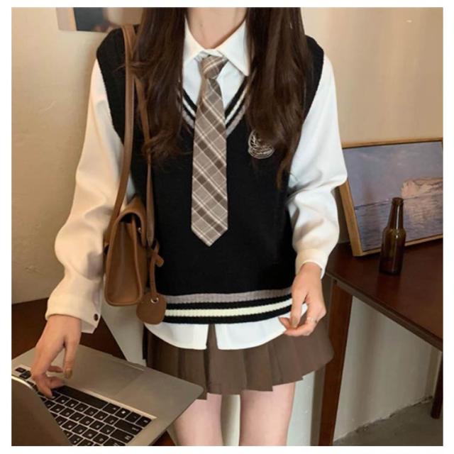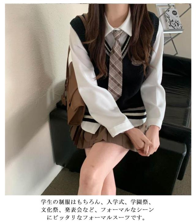 3点セット 女の子 スーツ 学生服 女子高校生 JK制服 制服 上下セット 長袖 白シャツ ライン入り ニットベスト プリーツスカート おしゃれ スクール制服 女子高校生 高校生 中学生 学生服 韓国 コスプレ衣装 コスチューム 仮装 可愛い 送料無料