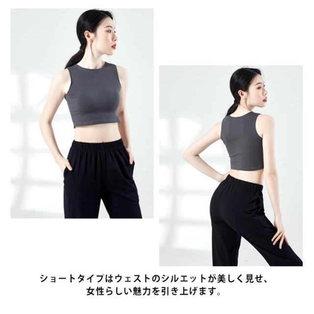 タンクトップ ショート丈 ノースリーブ レディース トップス スリム 無地 シンプル カジュアル フィットネス ヨガ スポーツ ダンス衣装 練習着 トレーニング お洒落 ストレッチ 送料無料