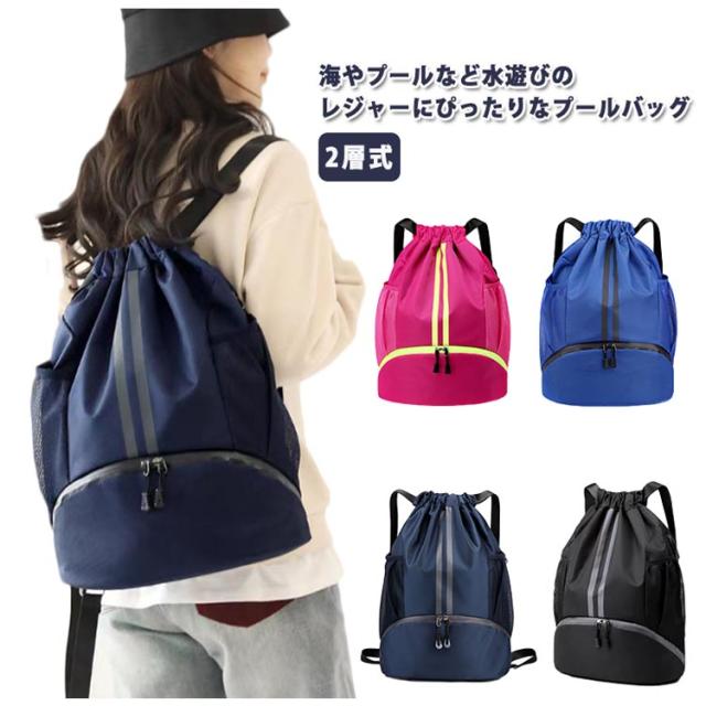 | ・海やプールなど水遊びのレジャーにぴったりなプールバッグ ・サンダルやスイムキャップ・ゴーグル・小物などを上段下段で分けて収納できる便利構造。 ・たくさん収納できるナップサックは学校やレジャー、お出かけや習い事など様々なシーンで大活躍。 | |