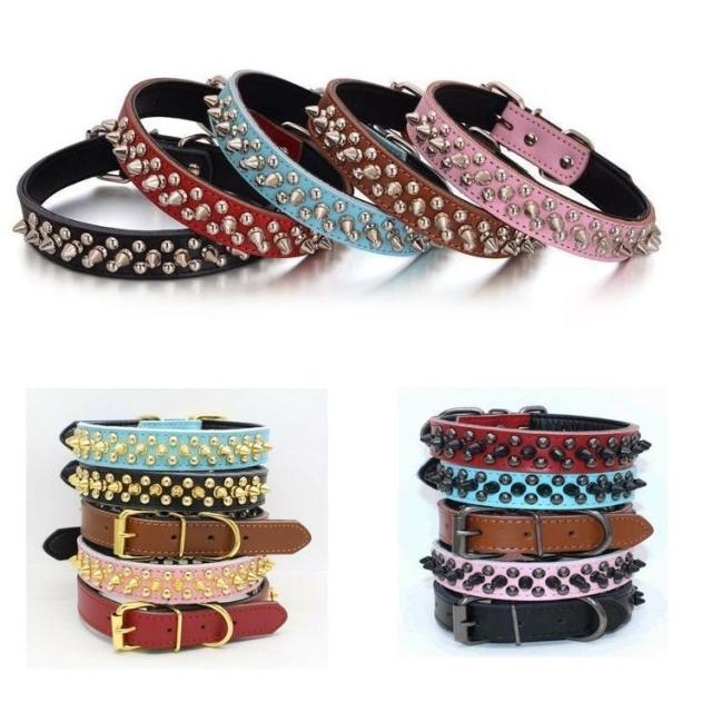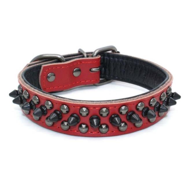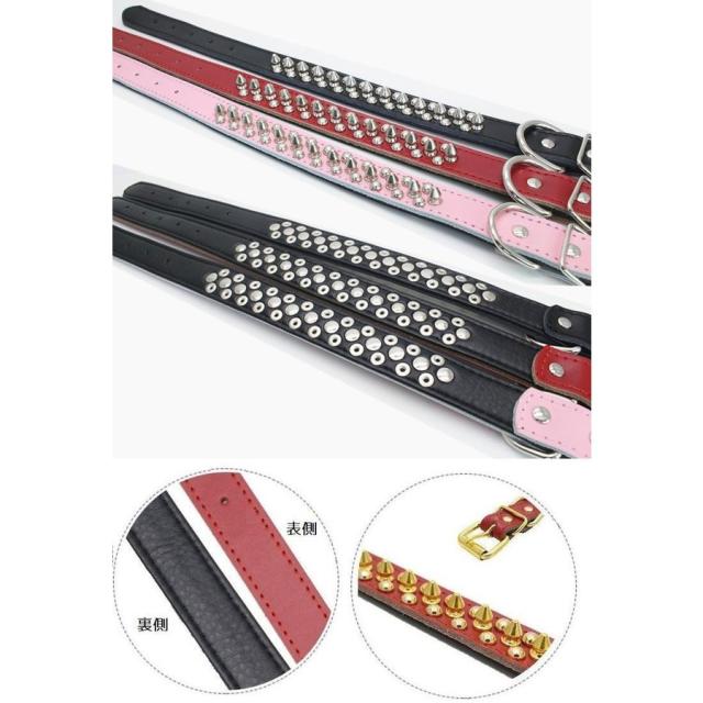 首輪 カラー 犬用 猫用 ペット用品 スタッズ付き レザー調 おしゃれ かっこいい ロックテイスト お散歩 お出かけ 鋲 ペットグッズ 黒 赤 茶色