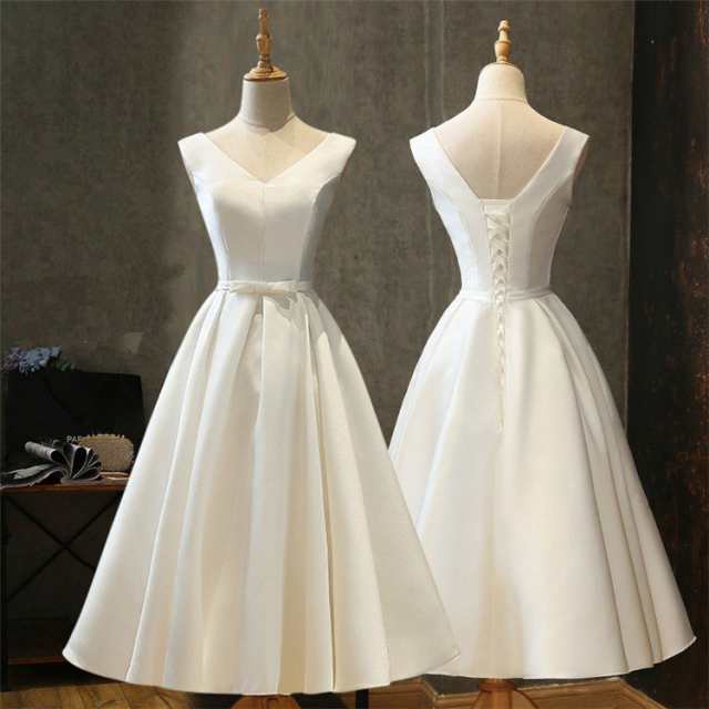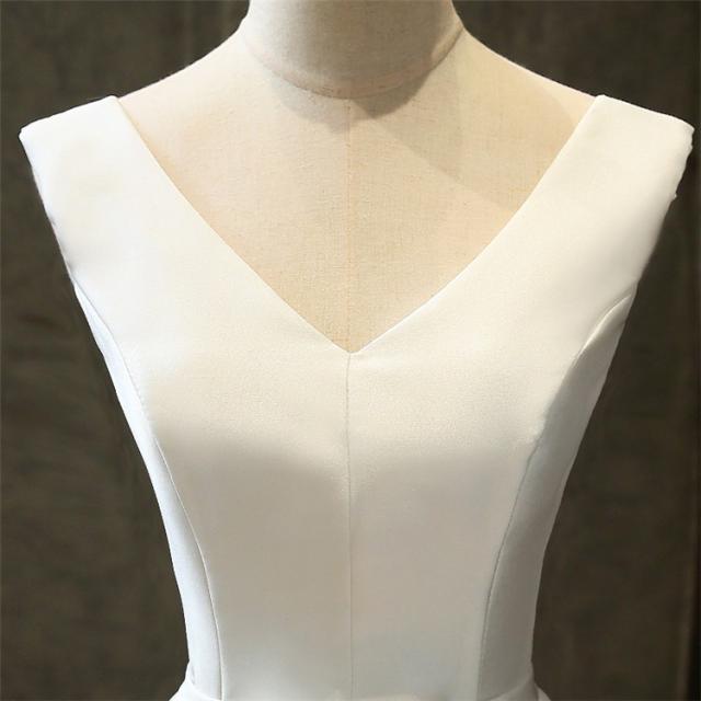 ウエディングドレス 二次会 花嫁 Vライン 白 ホワイト ロングドレス 結婚式 パーティードレス 演奏会 フォーマルドレス サッシュリボン