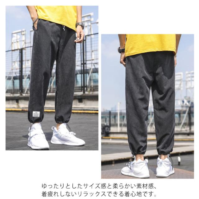| シンプルでおしゃれなメンズスウェットパンツ。 裾が紐で絞られて足元をすっきりと見せてくれるので華奢見え効果も! 柔らかなボリュームシルエットで、カジュアルな印象を演出してくれます。 ゆったりとしたサイズ感と柔らかい素材感、着疲れしないリラックスできる着心地です。 ウエストゴムで着心地らくらく、ヘビロテ間違いなしのアイテムです! | |