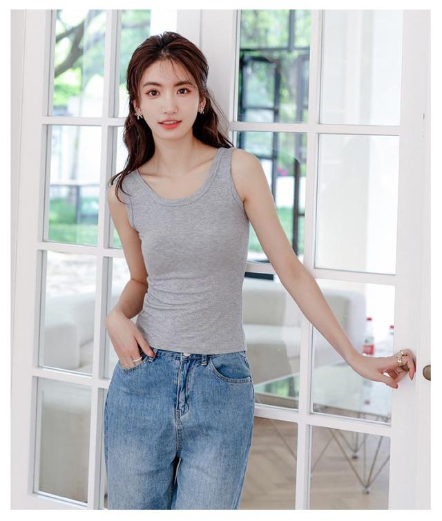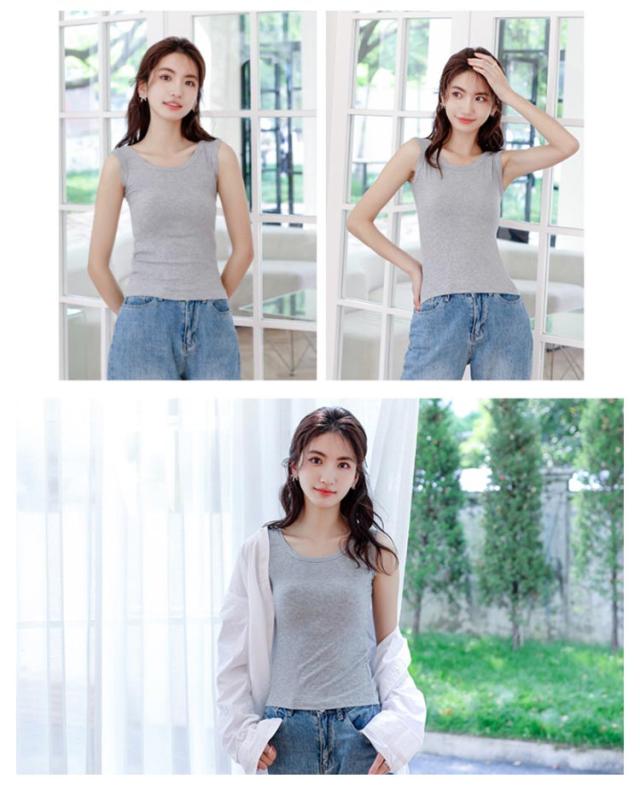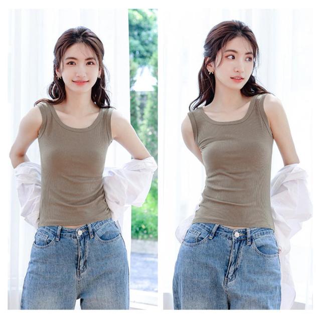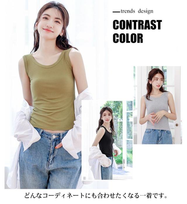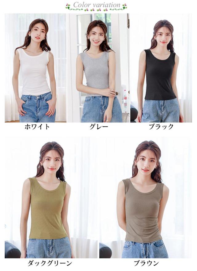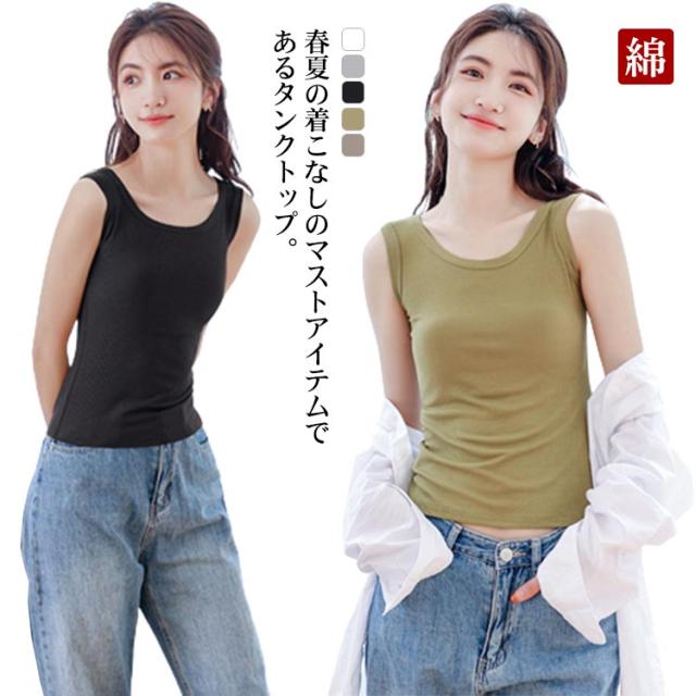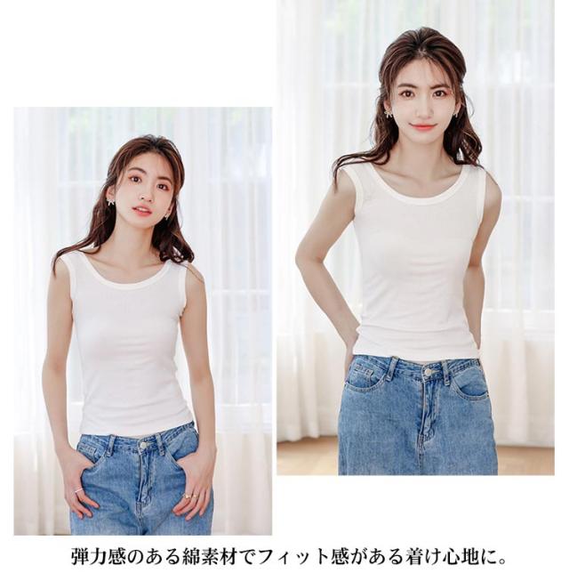 送料無料 タンクトップ 綿 ブラ紐隠しインナー レディース ノースリーブ tシャツ トップス リブ Uネック 袖なし キャミソール カットソー 肌着 下着 レイヤード 重ね着 シンプル ルームウェア ストレッチ 春 夏