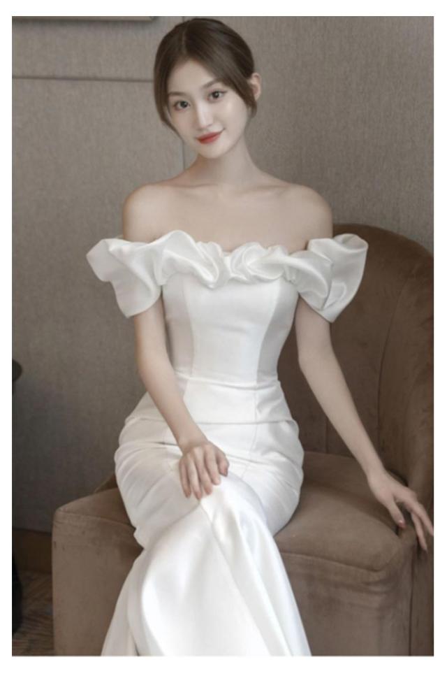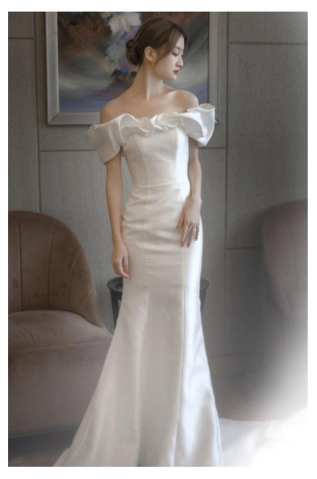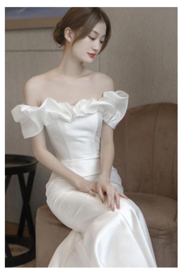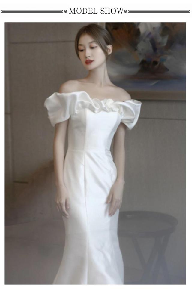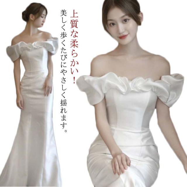 結婚式 マーメイドライン ウェディングドレス マーメイドラインドレス ウエディングドレス オフショルダー 花嫁 ブライダル 二次会 ロングドレス ワンピース 披露宴 マーメイド ドレス トレーン 演奏会 wedding dress 高品質 ホワイト 白