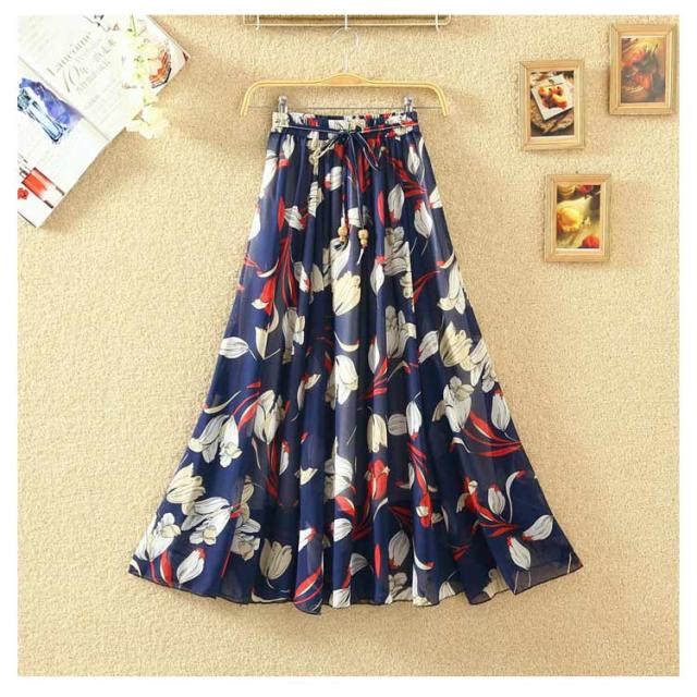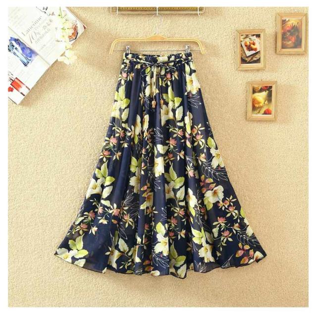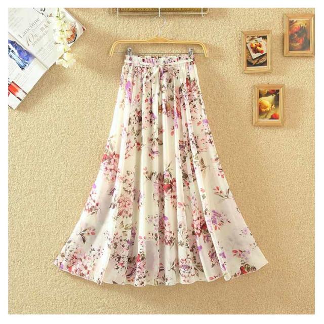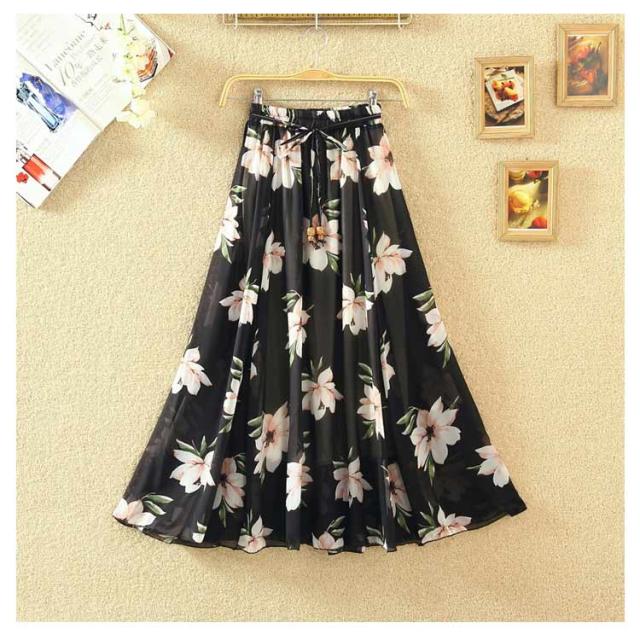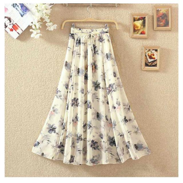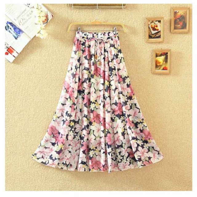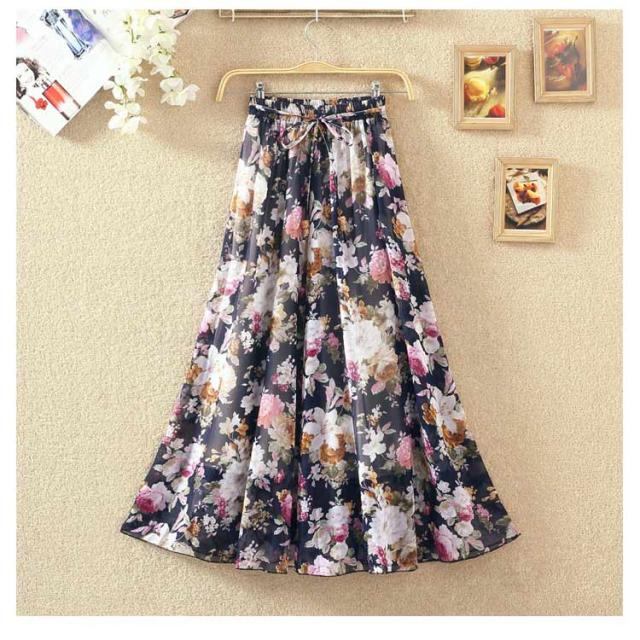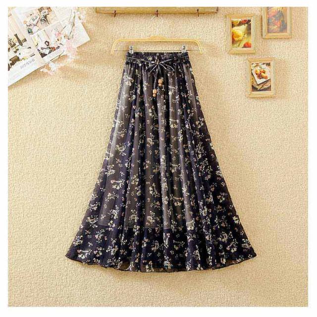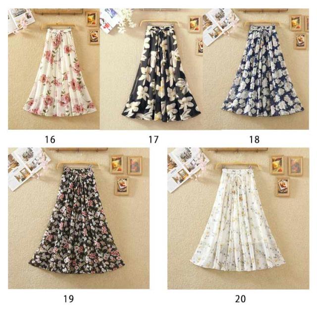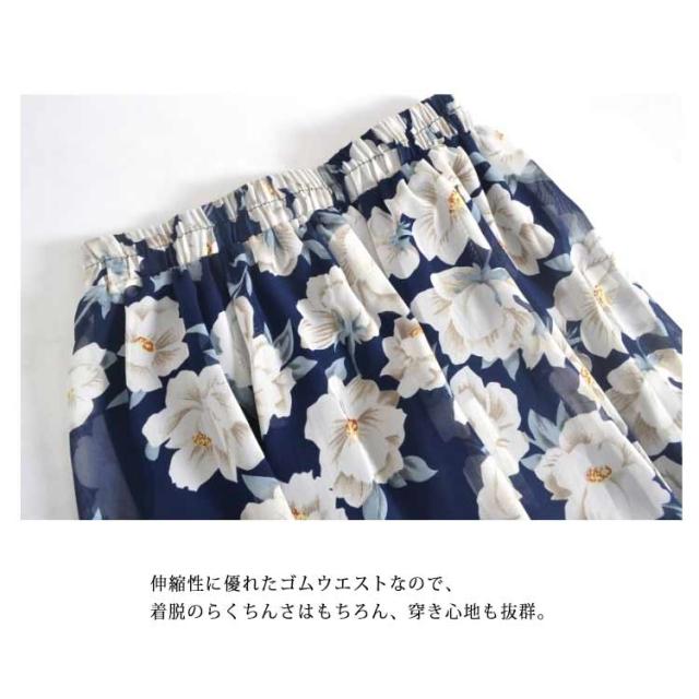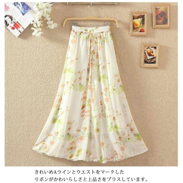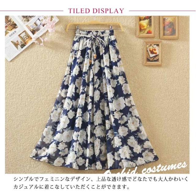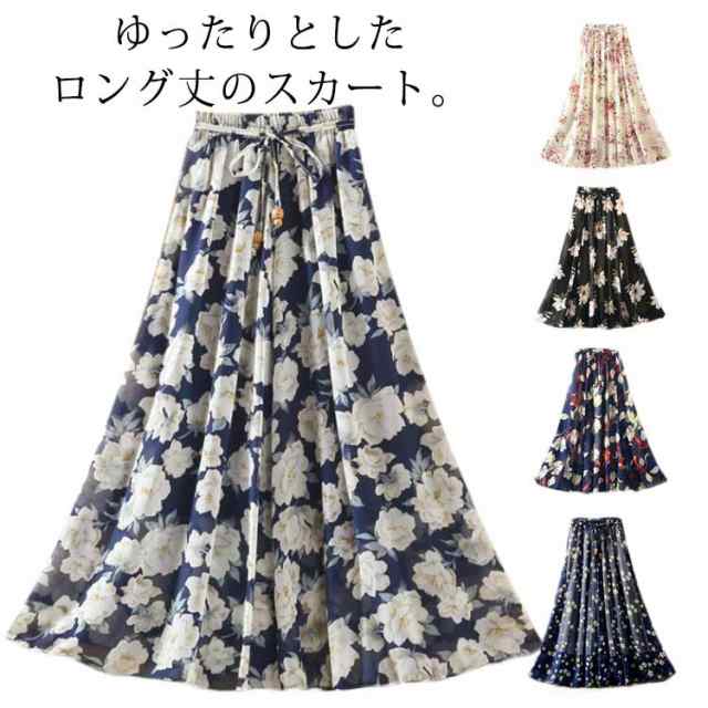 ロングスカート 夏 レディース 花柄 スカート フレアスカート Aラインスカート フレア ハイウエスト シフォン ベルト付き ウエストゴム 大きサイズ 春 夏 上品 着痩せ 涼しい 20代 30代 40代 50代 60代