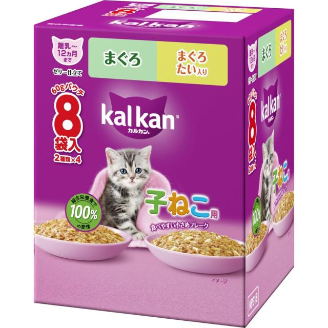 マース カルカン パウチ 12ヵ月までの子ねこ用 2種のセレクション まぐろ まぐろ たい入り 60g×8袋パック 猫用フード 【北海道・沖縄・離島配送不可】